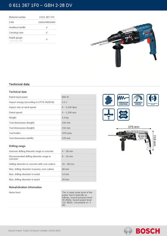 BOSCH GBH2-28 DV PROFESSIONAL (part no. 06112671F0)