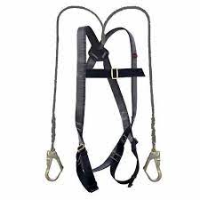 - Features: It made with high quality polyester having Dorsal D Ring as attachment with adjustable chest and thigh straps.Equipped with two Restraint Lanyards of 2.0m each, these Lanyard consists of one side loop and Steel Scaffold Hook on the other side.