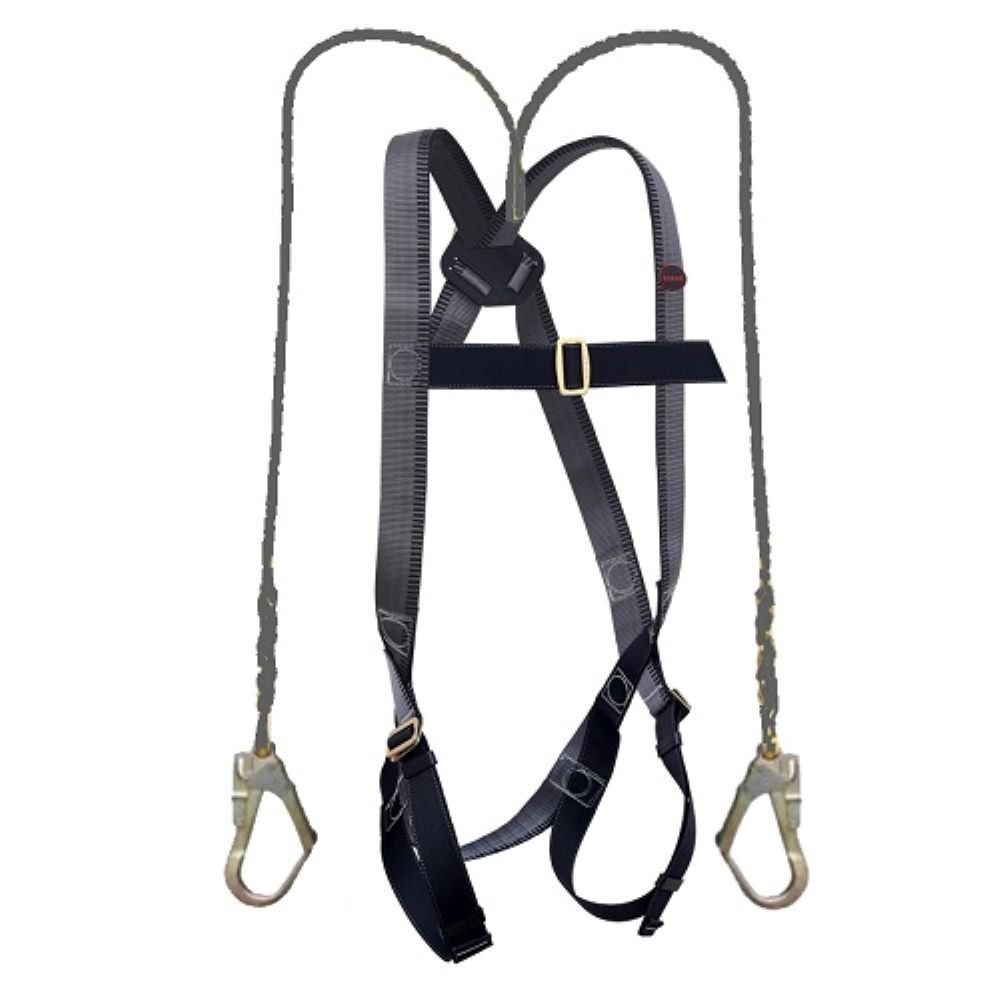 FULL BODY HARNESS "CLASS A" PERMANENTLY ATTACHED WITH 2 MTR. DOUBLE PP ROPE LANYARD WITH HOOK PN 131