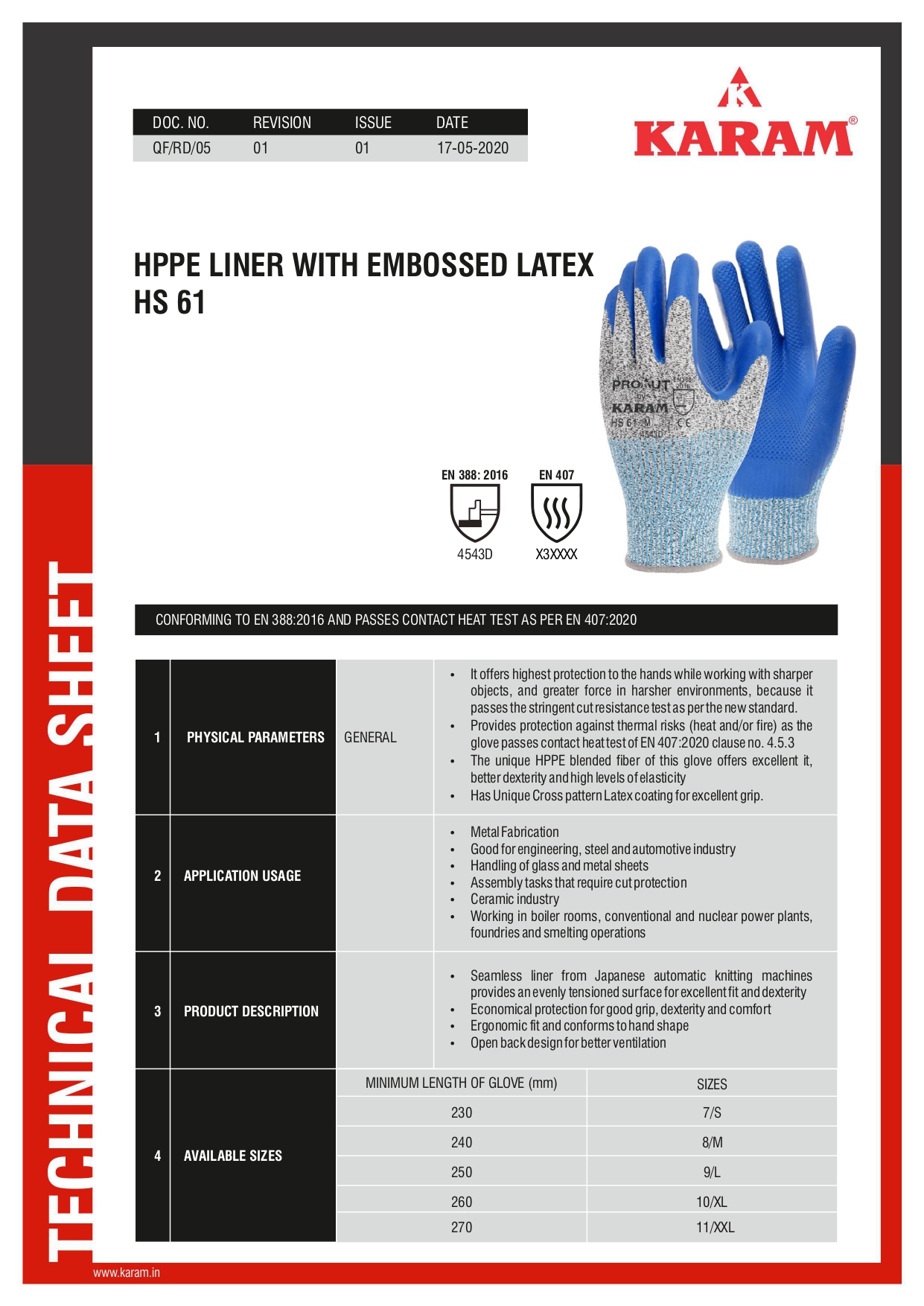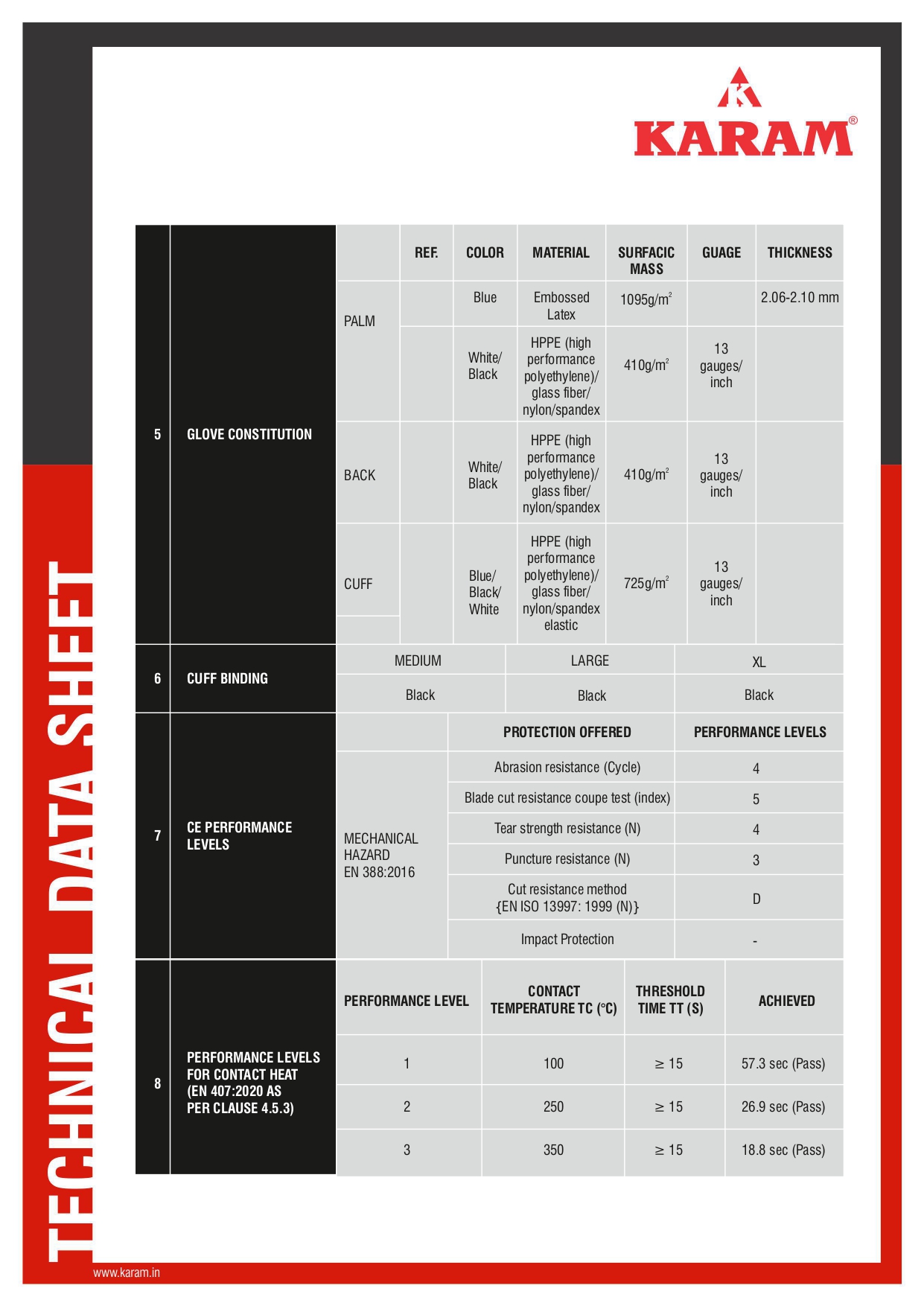 EN 388:2016 and passes contact heat test as per EN 407:2020