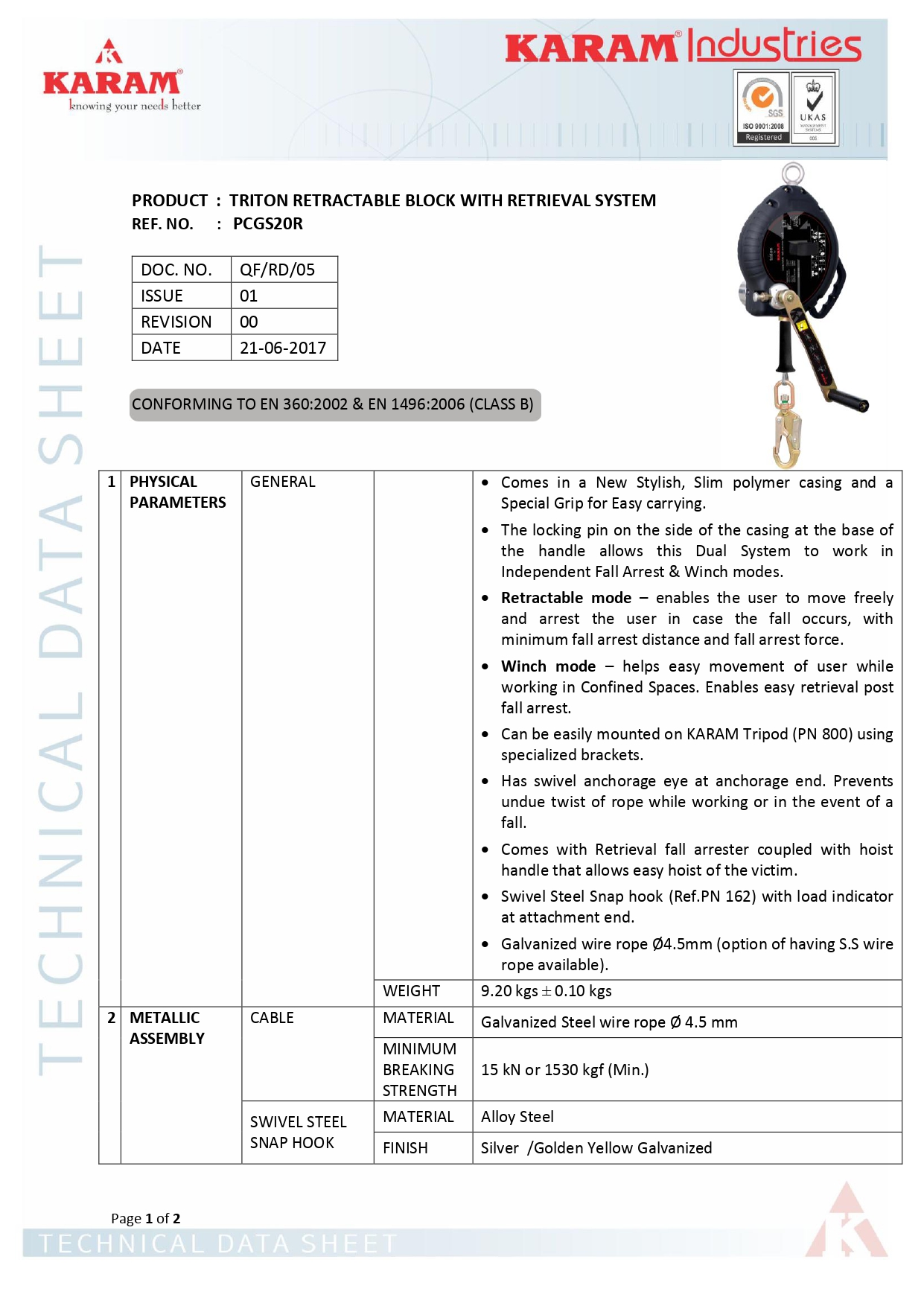 KARAM introduces a unique range of Retrieval Fall Arrest Blocks to enable easy retrieval of a victim of fall. These Blocks allow the fall to arrest and also allow easy hoist of the victim with the help of their inbuilt Winch mechanism when mounted on Megapods, Tripods, K-Pods etc.