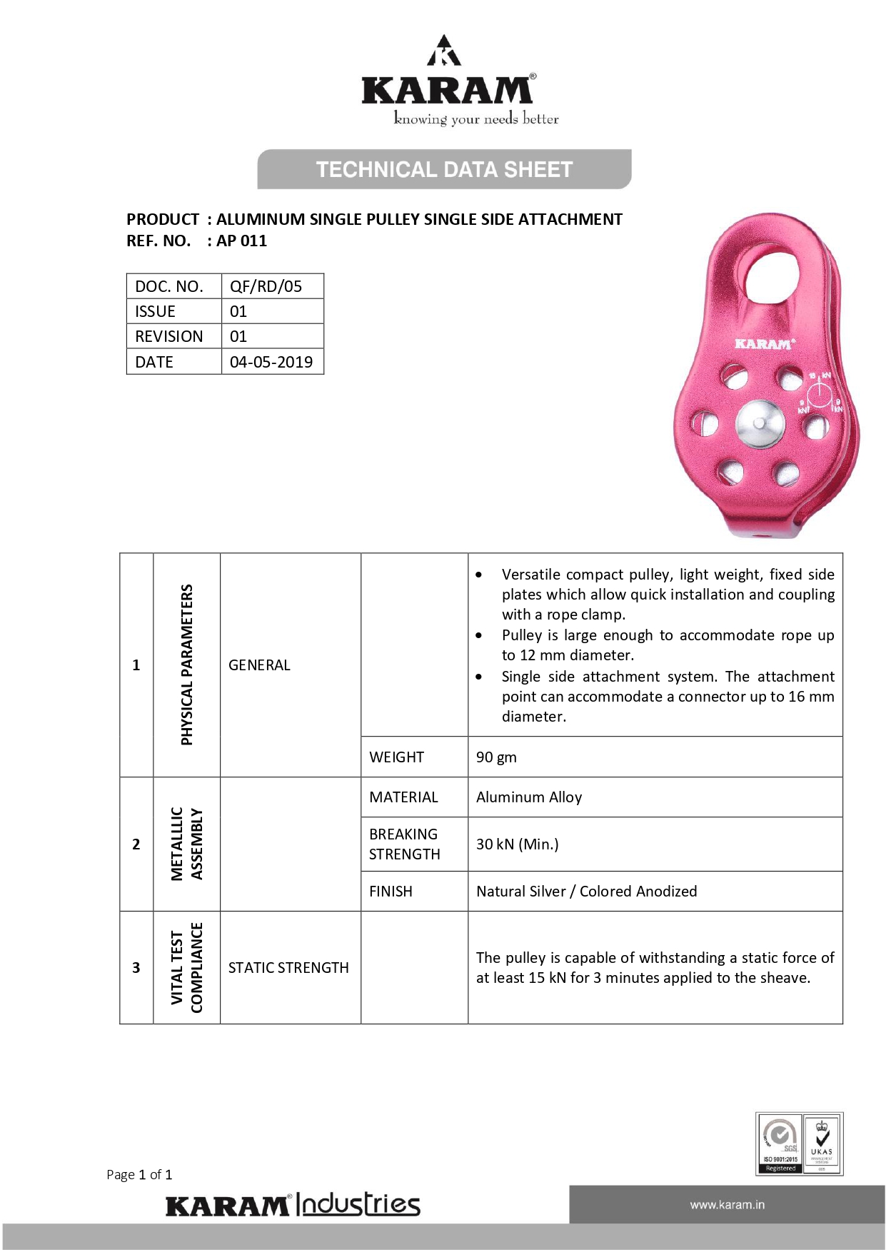 Karam AP011 ALUMINIUM SINGLE PULLEY