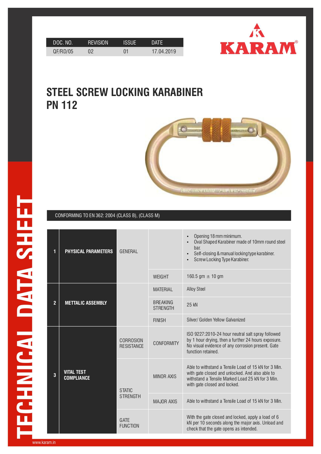 Karam Steel Locking Karabiner Is Used To Secure The Worker And Protect Him From Falling. This Fall Protection Equipment Has A Gate On One Side And The Other Side Is Called Spine. The Karabiner Is Secured By Easily Turning The Lock.