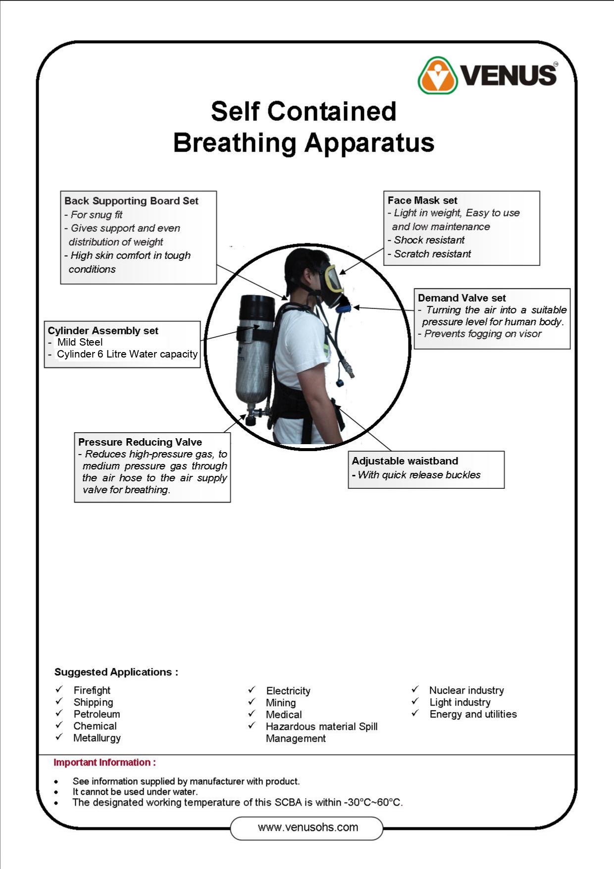 Venus SCBA 6.ltr STEEL CYLINDER- 73197