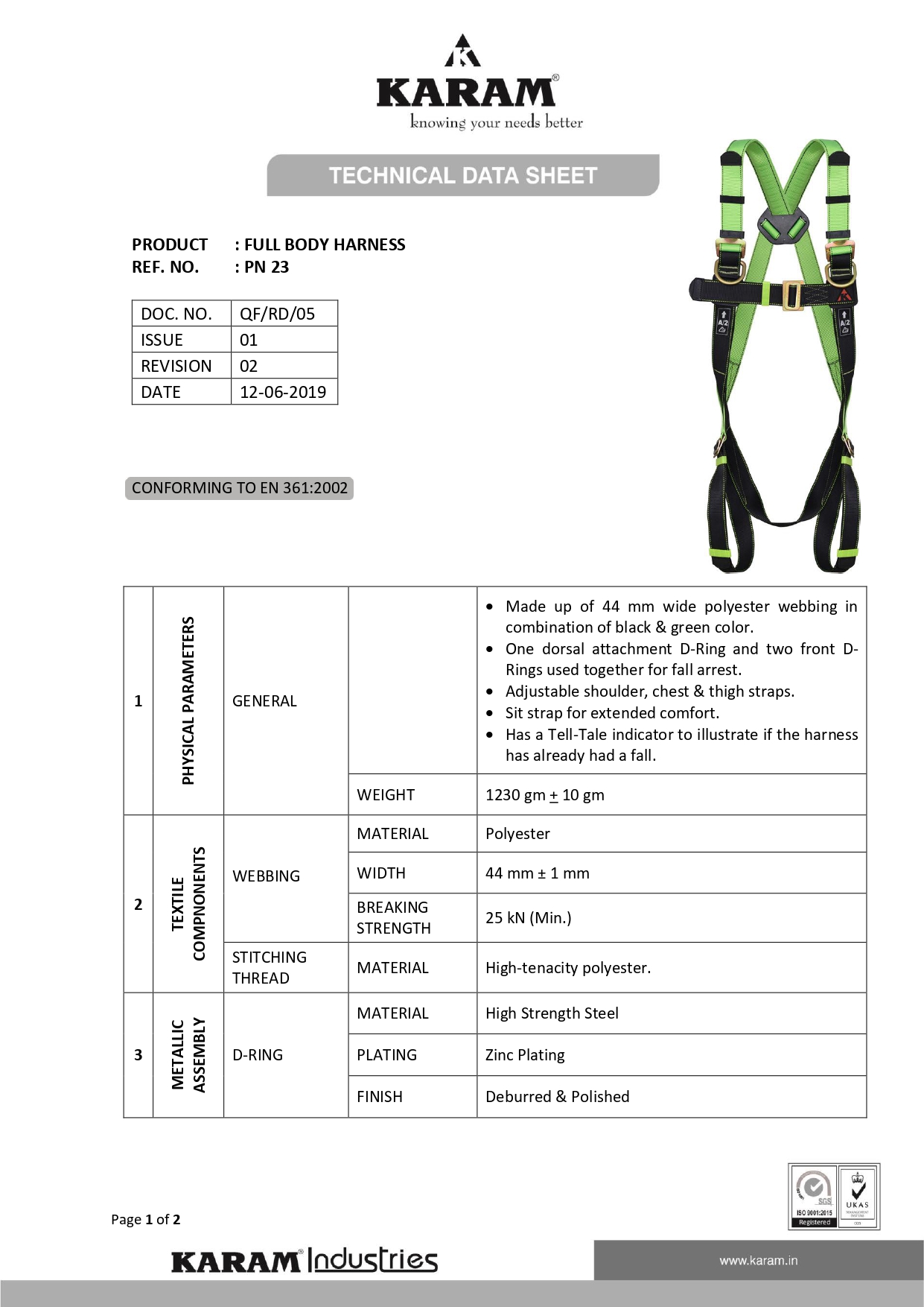 KARAM PN23 FULL BODY ADJUSTABLE HARNESS