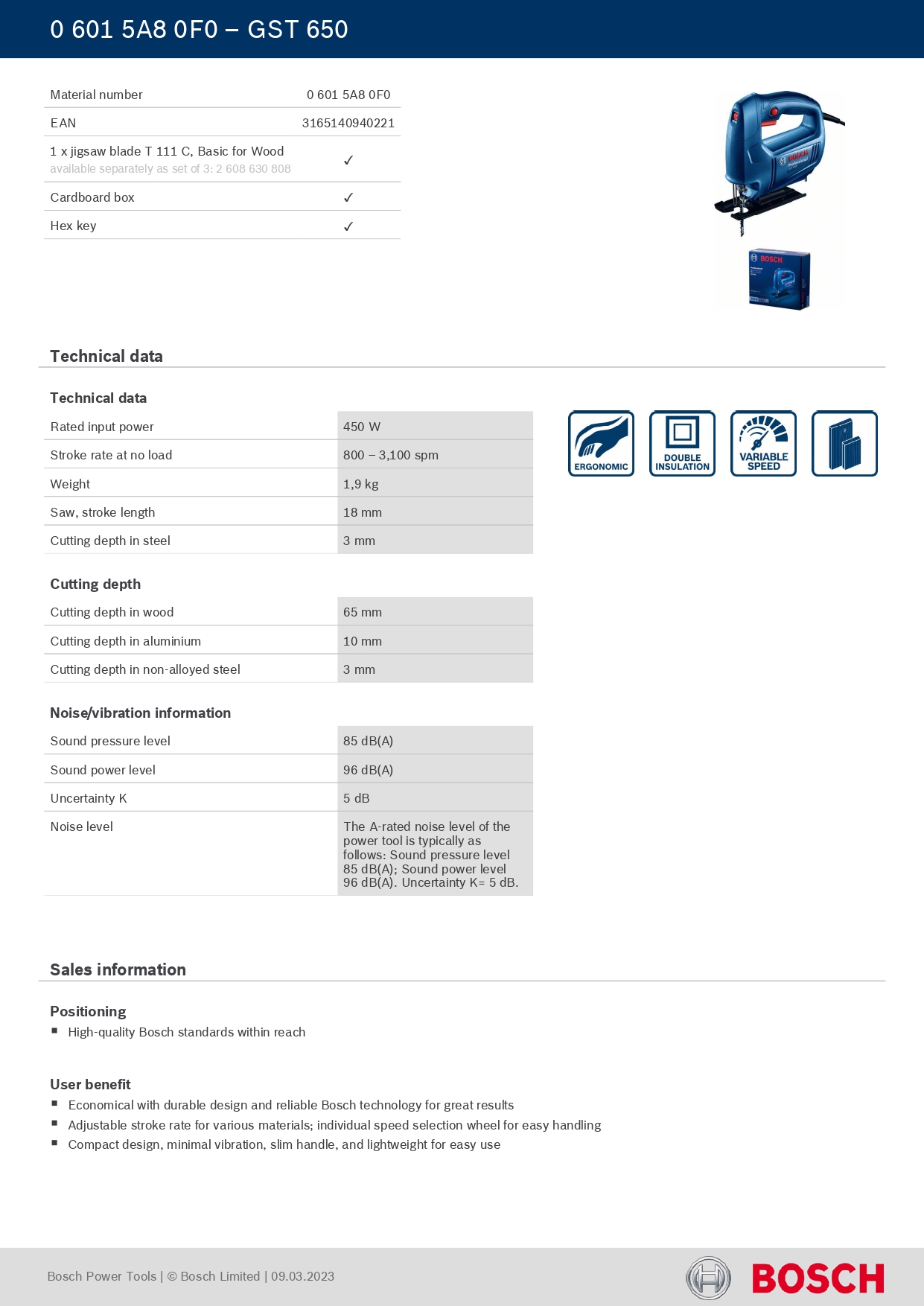 BOSCH GST650 JIG SAW (06015A80F0)