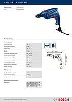 The Bosch GSB 501 Professional Impact Drill, with part number 06012161FD, is a versatile and durable corded tool designed for professional and DIY use. It is built for a variety of drilling and fastening tasks in masonry, wood, and metal.