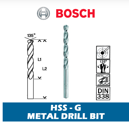 BUILDING & CONSTRUCTIONWELDING ITEMWELDING MACHINE AND EQUIPMENTSTOOLS AND MACHINERYPower Tools AccessoriesDrill Bits Bosch Metal Drill Bits 13/64inch HSS-G(2608585445)