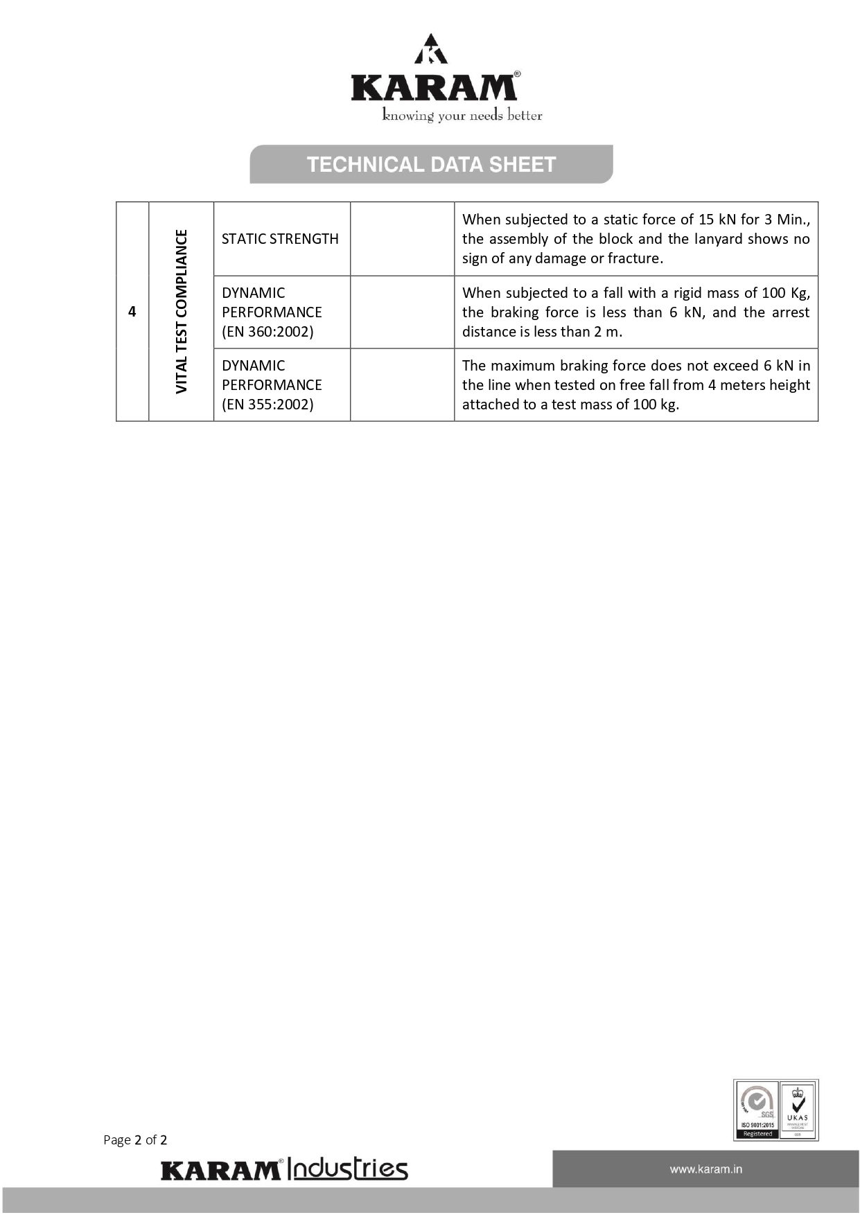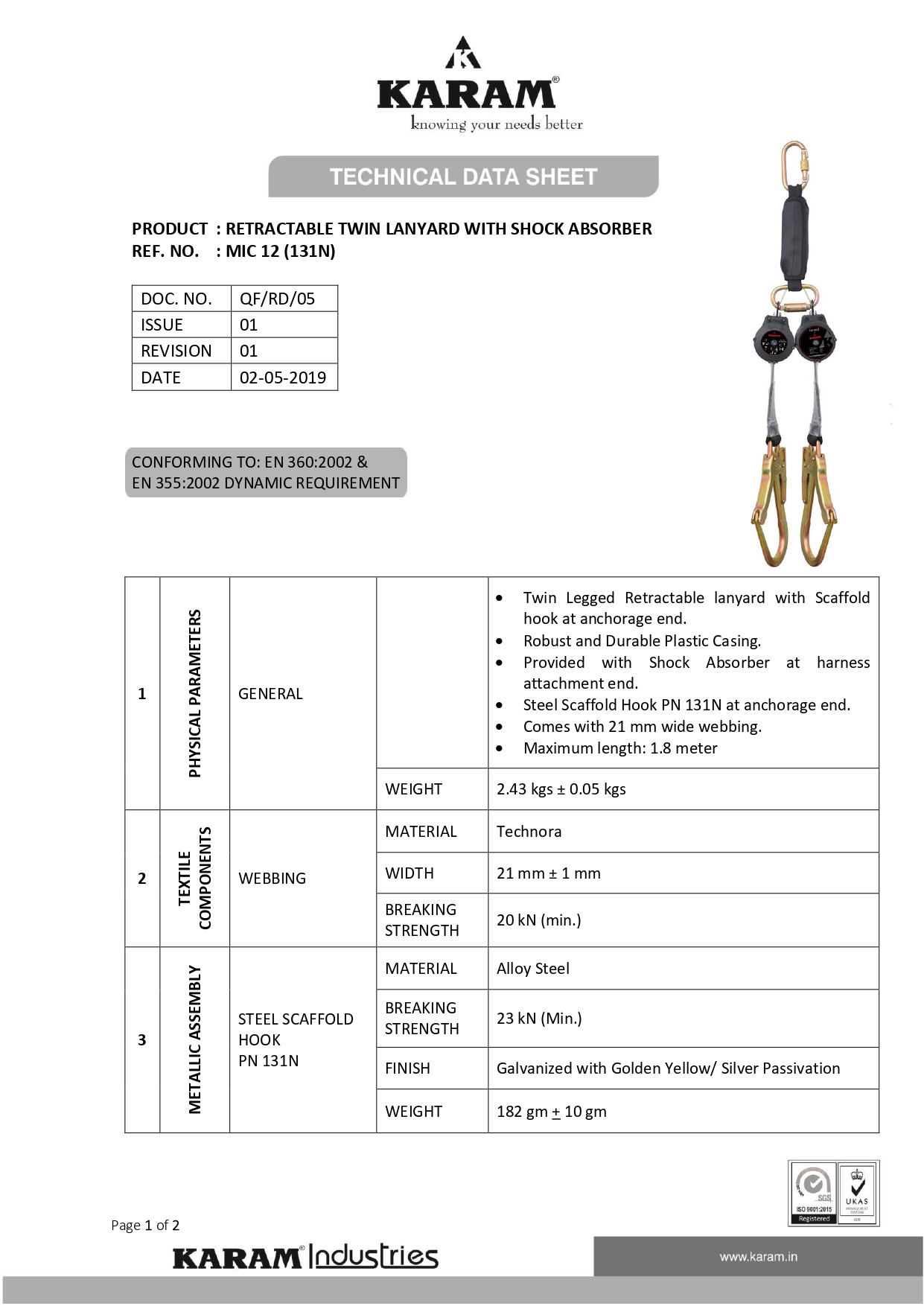 Karam Safety Fall Protection Metal Concrete Brick Structure Twin Legged Retractable Lanyard MIC 12(131N)