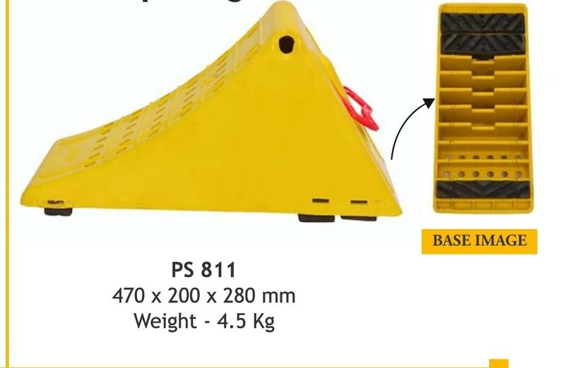 The PS811 wheel stopper is a heavy-duty, polyethylene (PE) plastic wheel chock designed to prevent the movement of heavy commercial vehicles. Manufactured by brands like Pioneer Swift, it is suitable for use with trucks, buses, and other heavy-duty vehicles in parking areas, maintenance bays, and other industrial settings.