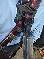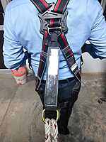 The product code KARAM PN22(PN351)(000_131)(1.8M) refers to a complete fall protection system that includes a full-body harness, a shock-absorbing double lanyard, and two scaffolding hooks. This equipment is designed for maximum safety during work at heights.