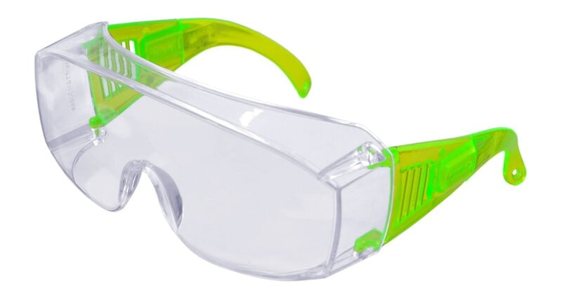 SAFETYOVERSPECTACLES,IN-BUILTFRAMEWITH99.9%UVPROTECTED,SCRATCH&IMPACTRESISTANT,POLYCARBONATECLEARLENS,NEONGREENADJUSTABLETEMPLELENGTH
