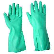 A Nitrile Rubber Hand Glove, Green, 14 is a reusable, chemical-resistant glove designed for industrial and household applications.