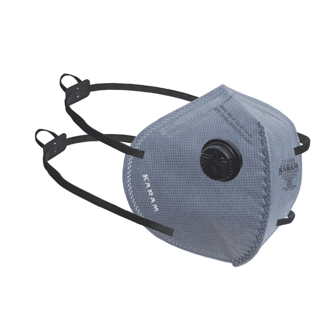 The KARAM RFH12+ is a grey FFP2-rated disposable cup-shaped respirator designed for high-efficiency respiratory protection in industrial and healthcare settings. It is engineered for comfort during prolonged use, with features that improve breathability and fit.
