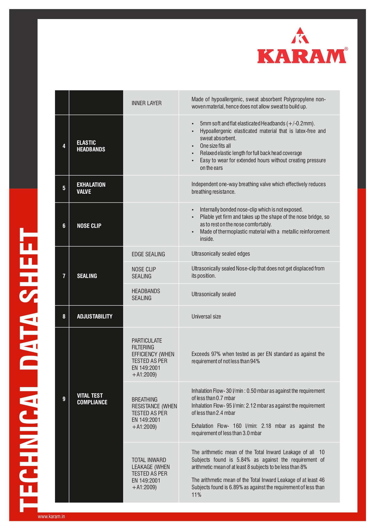 | Vital Test | Requirement as per Standard | KARAM Respirator |