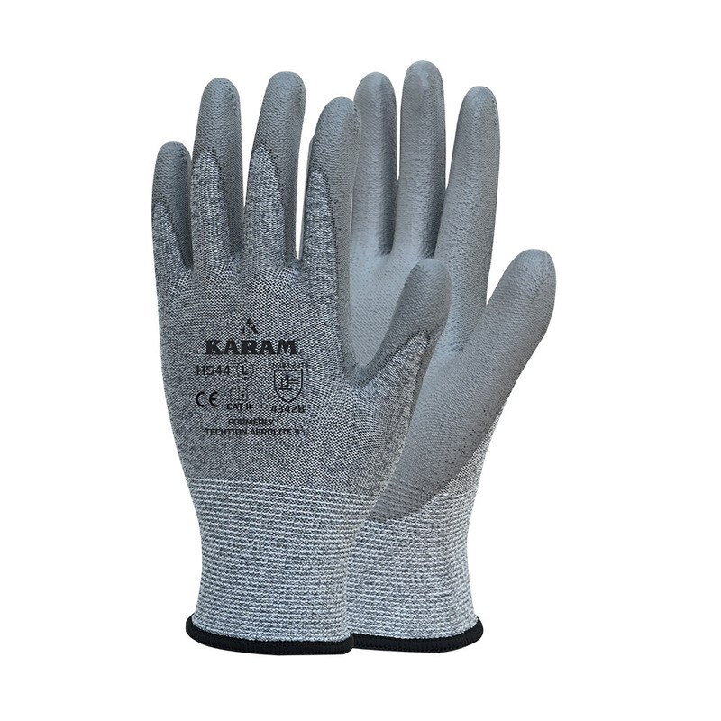 HP-SP-03223 TECHTION AEROLITE 3 CUTPRO -L KARAM - CUT RESISTANT. 13GG HPPE/GLASS/NYLON ASH SHELL WITH GREY POLYURETHANE COATING ON PALM. TDM B. LARGE