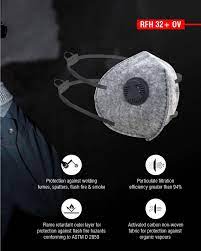 DISPOSABLE FLAT FOLD FFP2 SL D ORGANIC VAPOUR GREY WELDER'S RESPIRATOR WITH ADJUSTABLE HEAD BAND AND EXHALATION VALVE COMPLIES TO IS9473 2002 EN149 2001