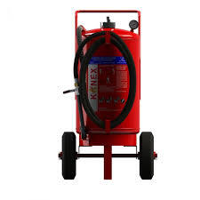 ABC type fire extinguishers with a 75kg capacity are high-capacity, wheeled (trolley-mounted) units designed for large-scale industrial risks. Under Indian Standards (IS 16018:2012), these extinguishers must undergo hydrostatic pressure testing (HPT) to ensure the cylinder can safely withstand operational pressures without leaking or bursting.