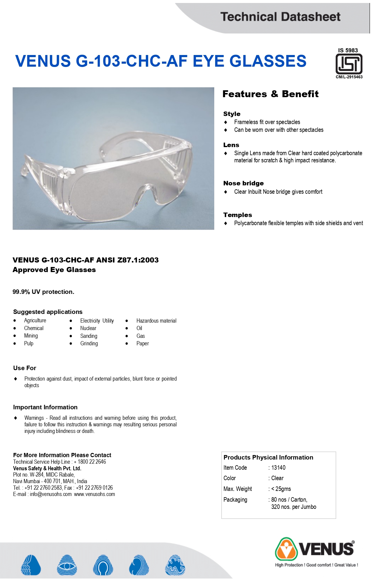 Venus G603 ANTI-FOG-CLEAR Goggles 11005